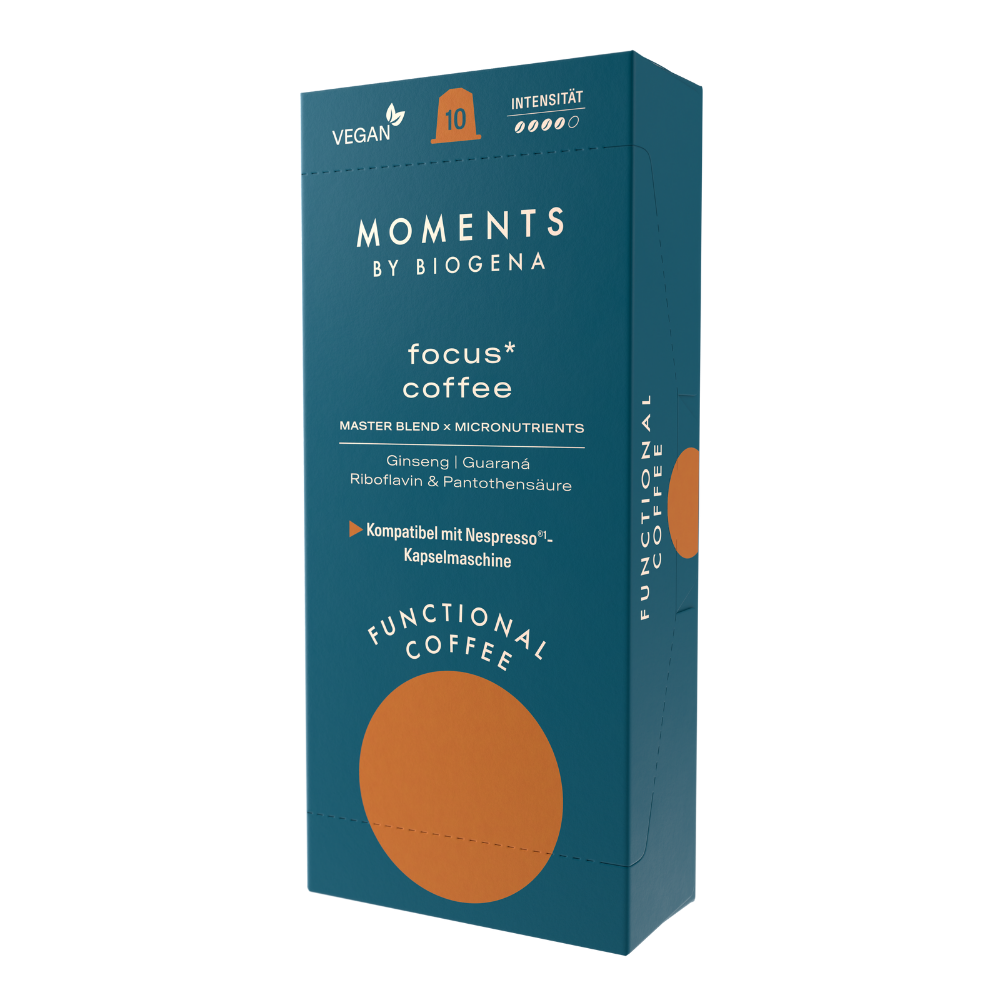 Funktsionaalne kohv Moments by BIOGENA ühendab kvaliteetse röstkohvi BIOGENA teadusliku kompetentsi ja kõrge puhtusastmega mikrotoitainetega.